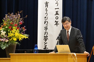 本校卒業生である坂口志文先生の横断幕を掲げました。